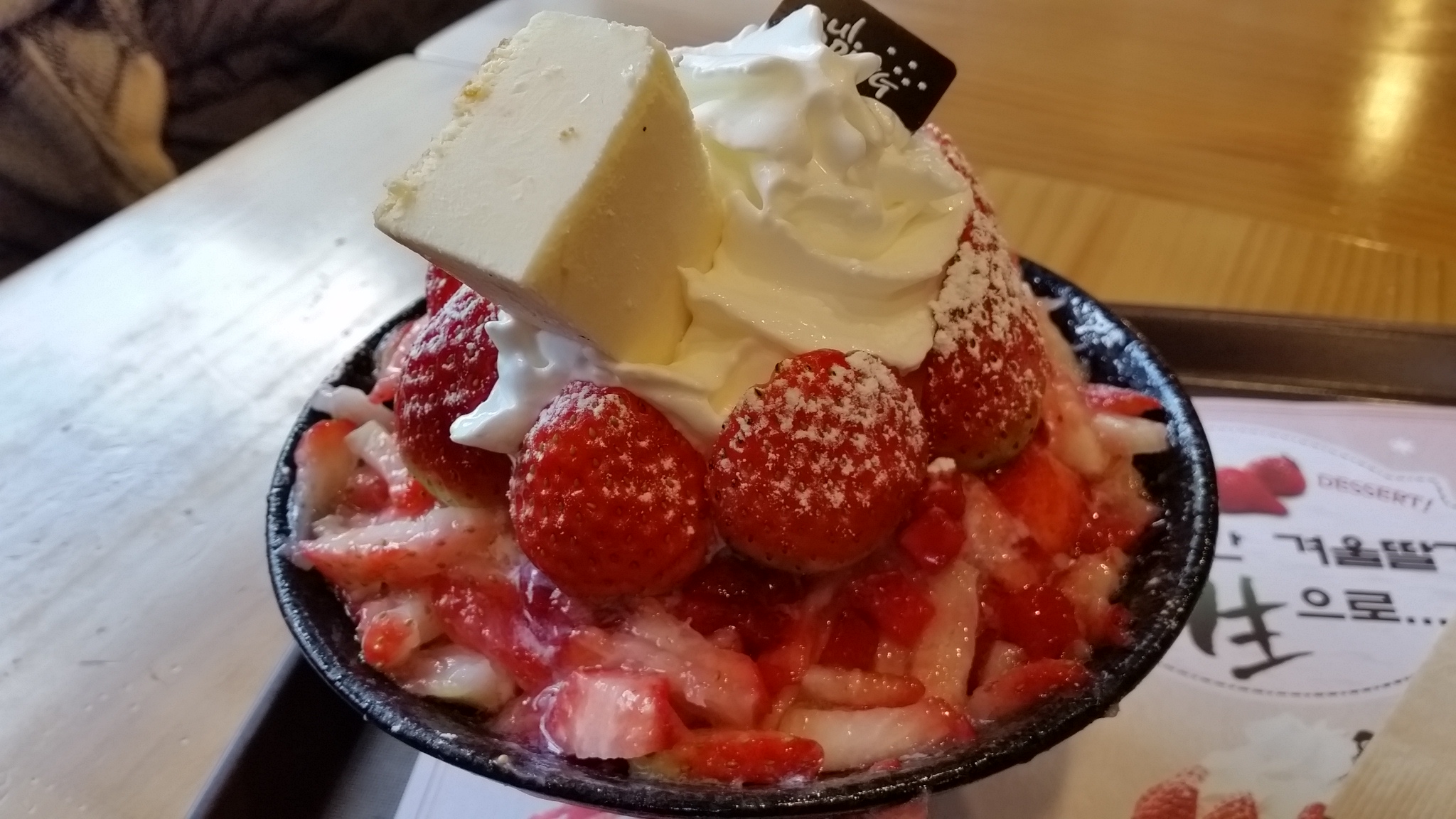 ふわふわの氷にこれでもかって言うぐらいのイチゴ+練乳+ソフトクリーム+
