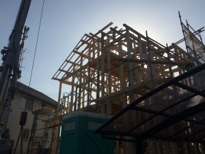 本日は、宇治市琵琶台のK様邸の上棟日でした。