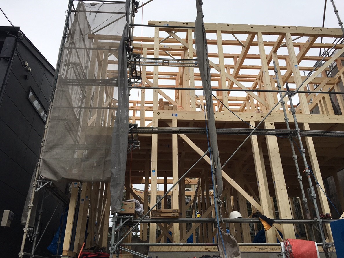少し前に上棟しましたA号地のお隣です^^