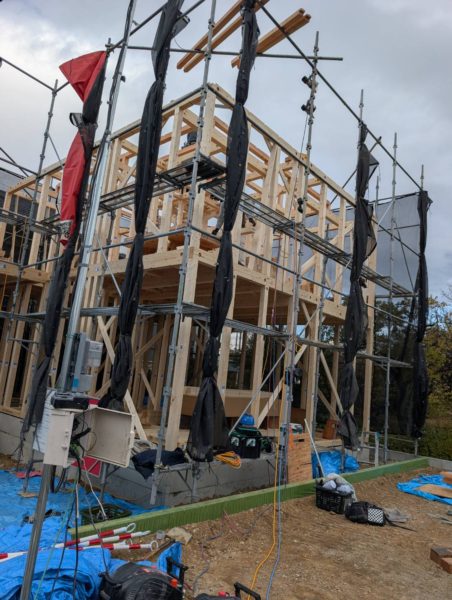 図面の中で描いてきたモデルハウスが、ついに形となって立ち上がりました✨