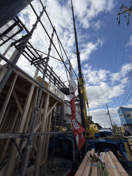 朝から大工さんたちのチームワークが光り、スムーズに棟が上がっていく現場は、とても活気にあふれていました。