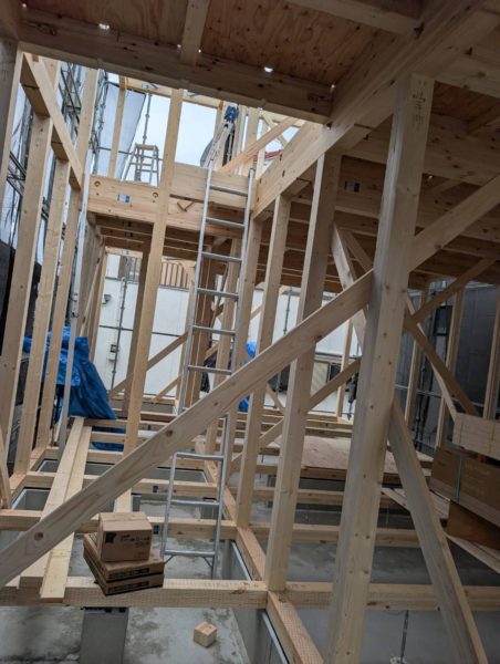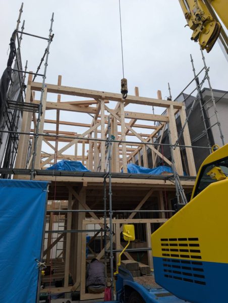 前日の雨も上がり、落ち着いた天候のもとで上棟を迎えることができました。